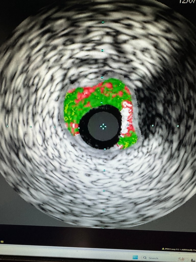 EKG stress test is not a reliable predictor of adverse coronary events. it can miss even severe coronary occlusive disease, as demonstrated above; Coronary Calcium score may have increased the sensitivity. The right coronary artery will be tackled two days after the myocardial infarction.