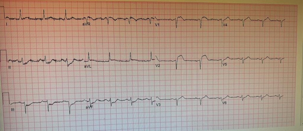 CASE REPORT: A 61 year old Caucasian female presented with sever chest pains for 3-4 hours. EKG was obtained.