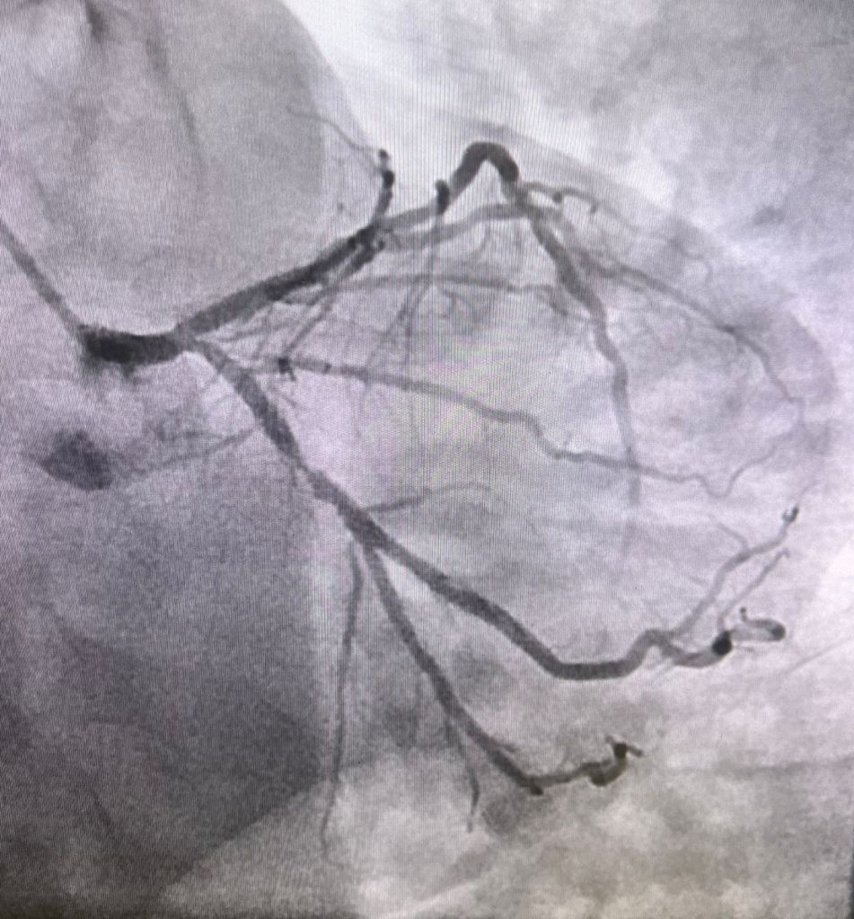 LHC showed discrete lesions but diffuse 3 vessel disease, extensive but good targets. Scheduled for cabg next week.
