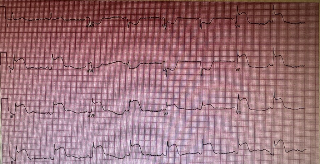 CASE REPORT: A 61 year old Caucasian female presented with sever chest pains for 3-4 hours. EKG was obtained.